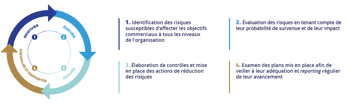 Cette image présente un schéma circulaire avec des étapes liées à la gestion des risques dans une organisation.