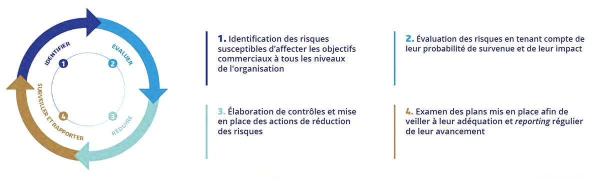 Cette image présente un schéma circulaire avec des étapes liées à la gestion des risques dans une organisation.