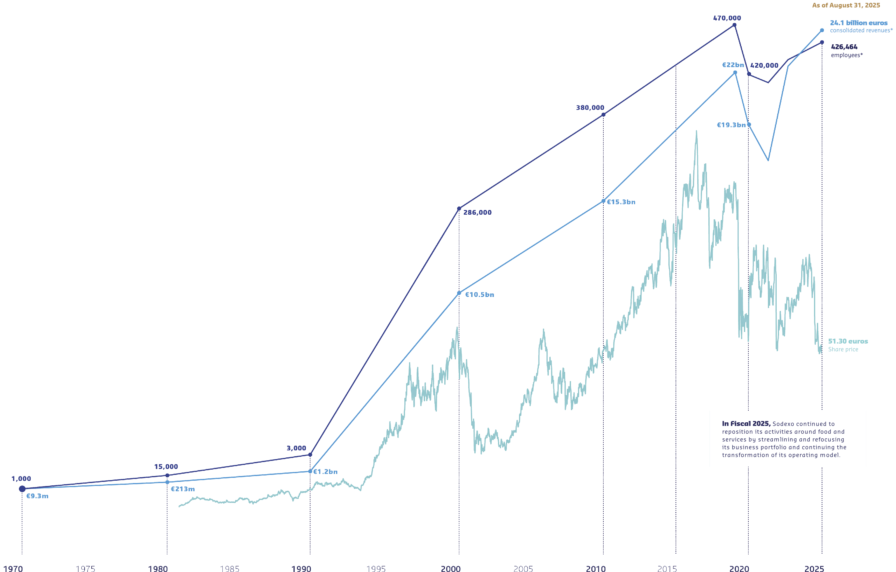 During fiscal year 2025, Sodexo continued to reposition itself around food services and services by streamlining and refocusing its portfolio of activities and continuing to transform its operating model.